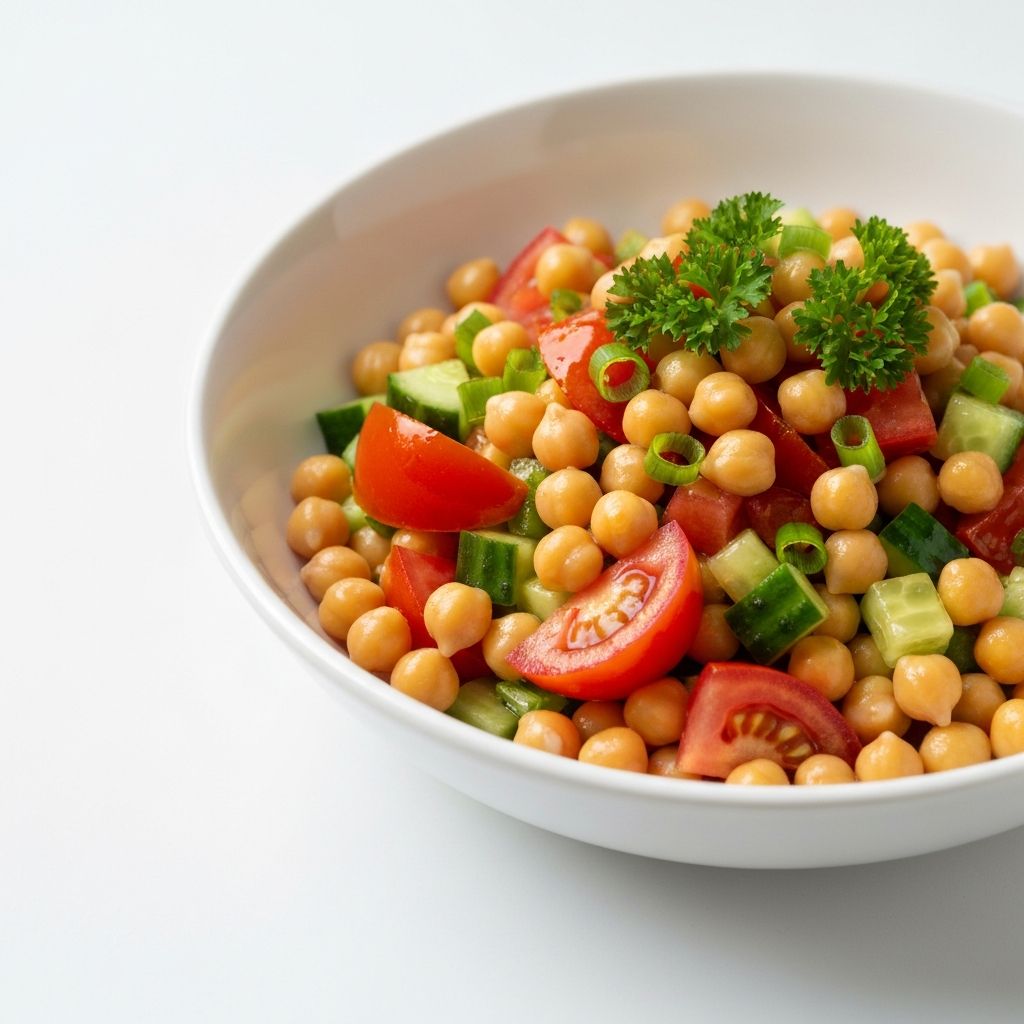 Protein dolu nohut, taze sebzeler ve zeytinyağı ile besleyici bir tamamlayıcı.